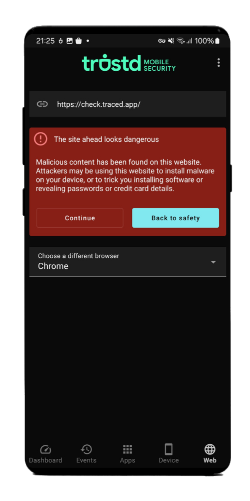 Upgrade to Trustd Plus in-app and get peace of mind with Safe Browsing.